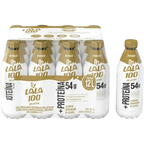 Leche Lala 100 Sin Lactosa Proteína 1L es un producto de la marca Lala, originario de México. Está presentado en una botella PET de 1 litro. Se maneja en condiciones de manejo seco. Ideal para preparar smoothies, postres o simplemente disfrutarla en el desayuno. Combina bien con frutas, cereales y café. Disponible en caja de 12 piezas. Envío a CDMX y algunos municipios del Estado de México.